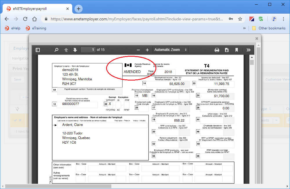 - When you have finished printing your T4s, close the PDF and return to eNETEmployer. The PDF that contains your T4 information remains in your Downloads folder - you can choose store it in a different location if you prefer.